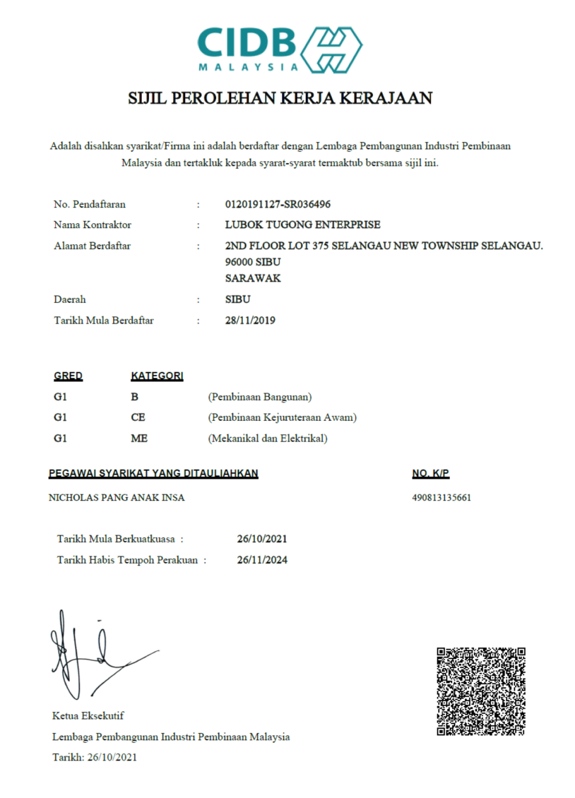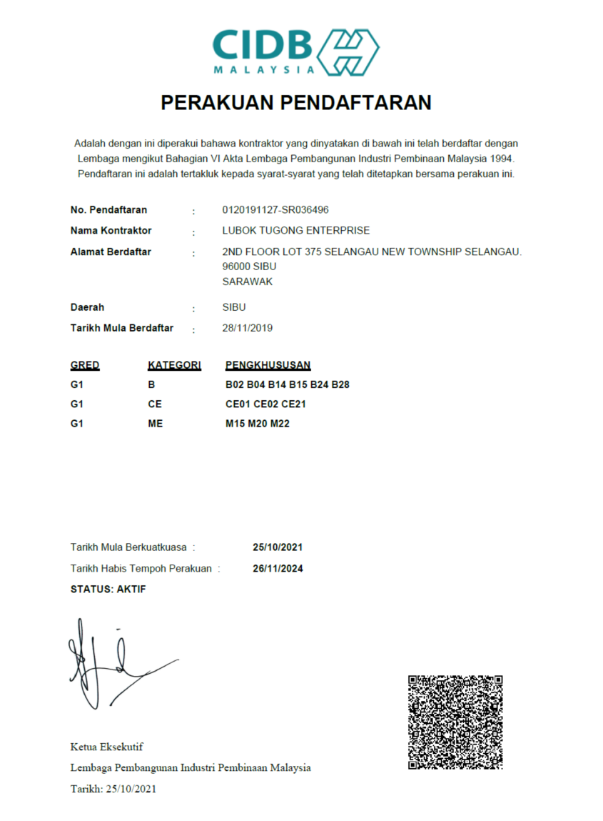 LUBOK TUGONG ENTERPRISE began its business operation since 2015 and mostly involve in construction and maintenance.
